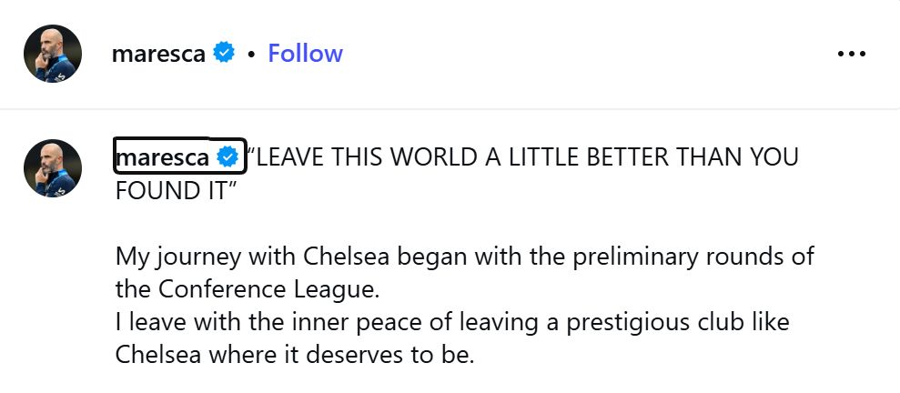 Enzo Maresca has just dropped a statement following his exit from Chelsea.