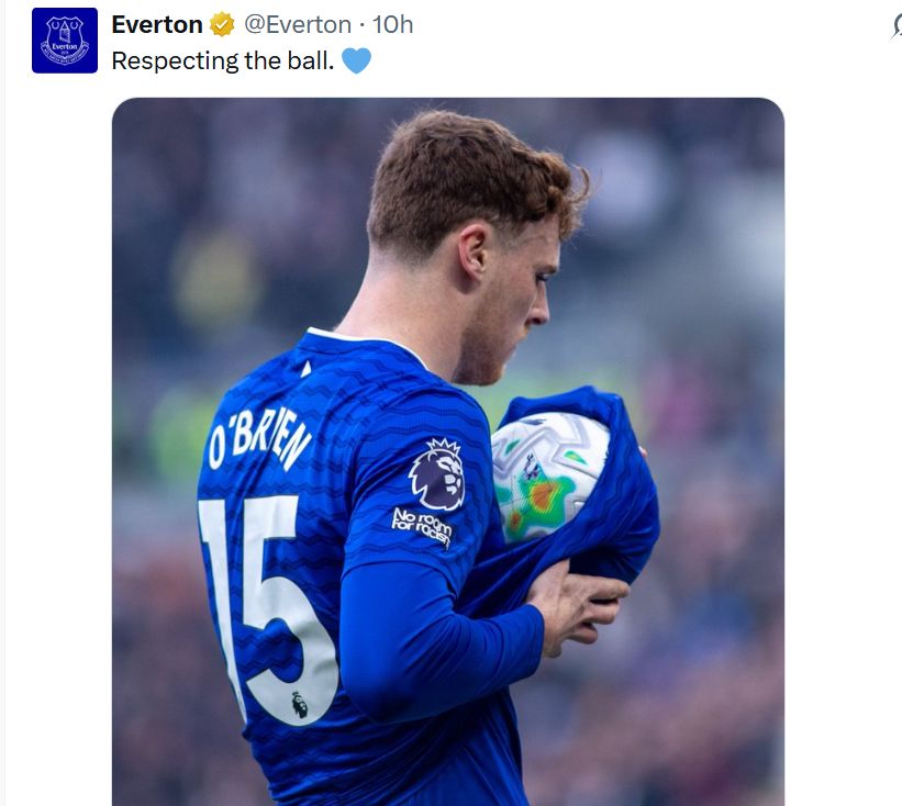 As you can see above, Everton posted on their X account, ‘respecting the ball’.
